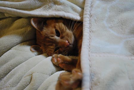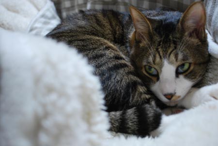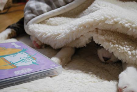 猫ズはおるすばんでした。じ○らんをお布団にするムギくん。気分は絶対、にゃ○んですよ!