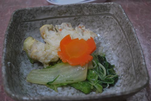 さて、カニは旅館のお昼食コースで頂いたのですが。