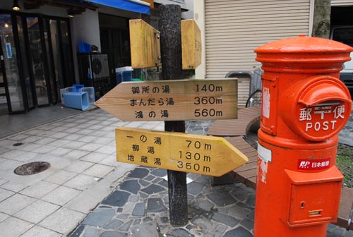 外湯は全部で七つ、標識にないのは多分、JRの駅のすぐそばにある温泉です。